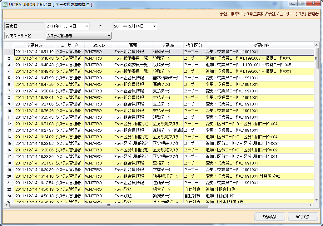 ・人数が1000人、2000人と増えた場合でも、詳細な検索を行う事で、簡単に組合員を探し出すことが出来ます。 |